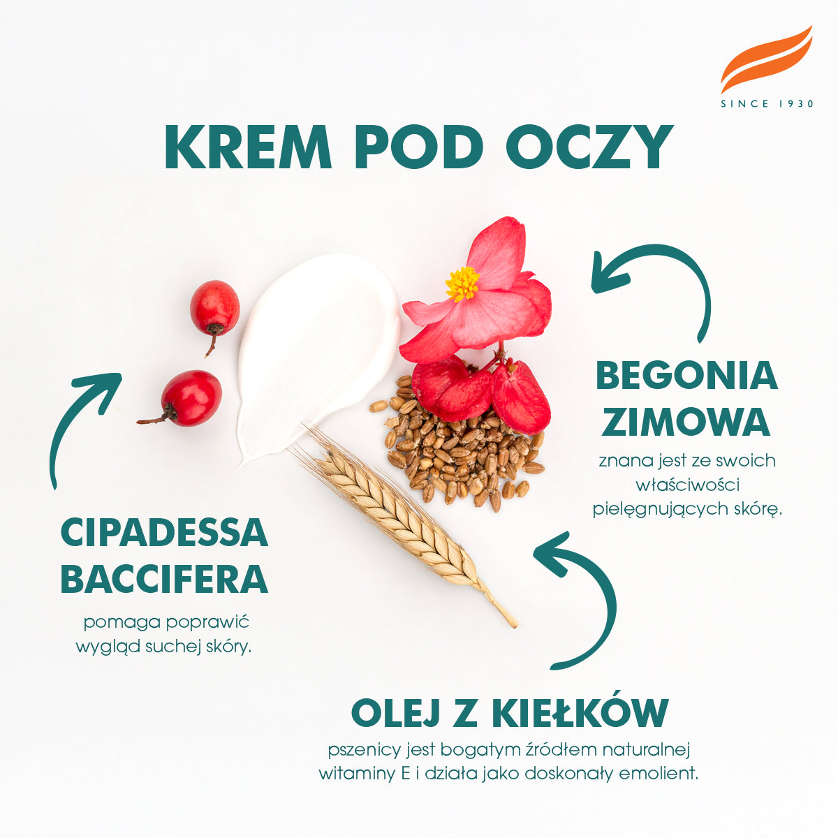 Zapobiega powstawaniu pod oczami cieni pod oczami. Zawiera sprawdzoną i bezpieczną mieszankę ziół stworzoną specjalnie do pielęgnacji delikatnej okolicy wokół oczu. Zapobiega powstawaniu pod oczami cieni pod oczami.