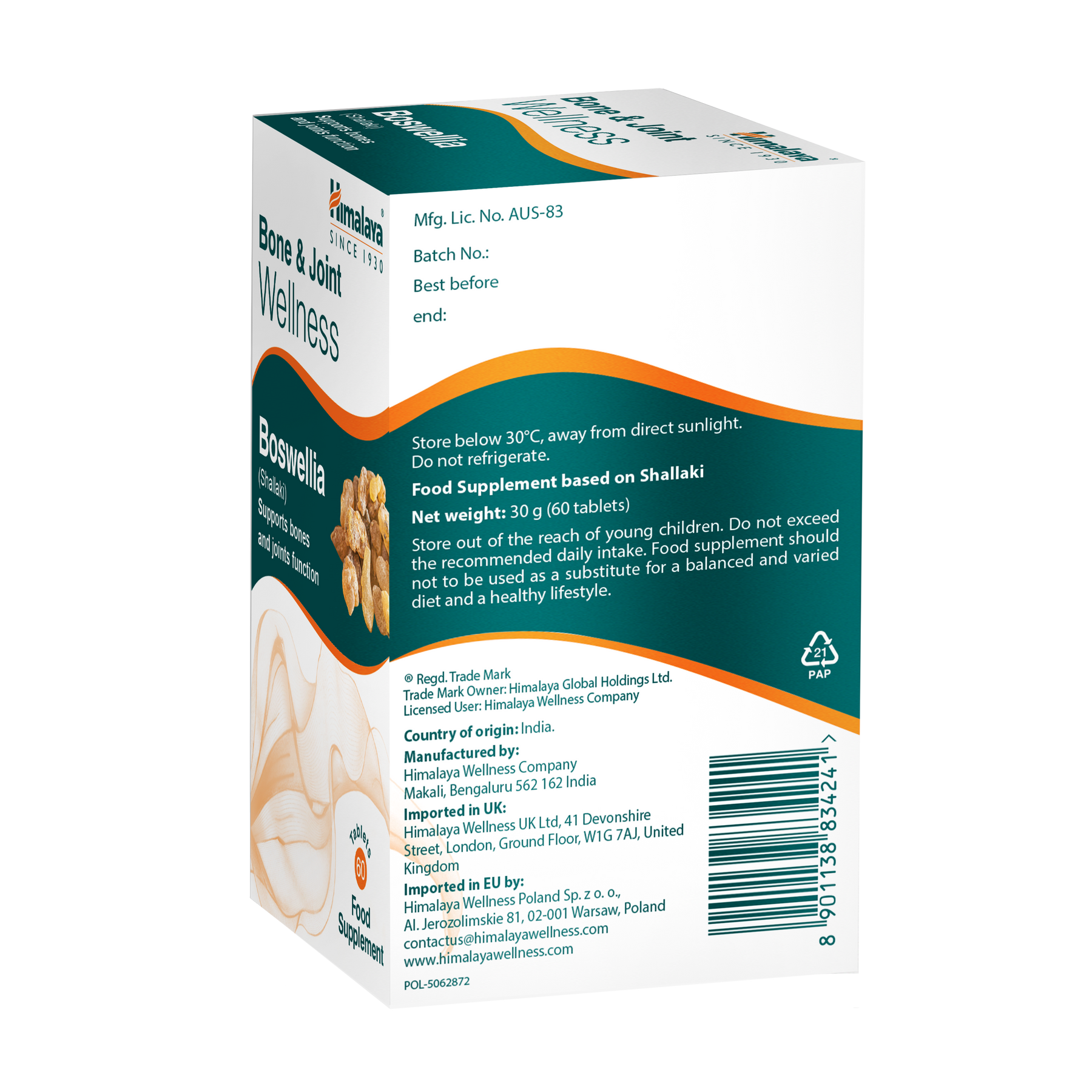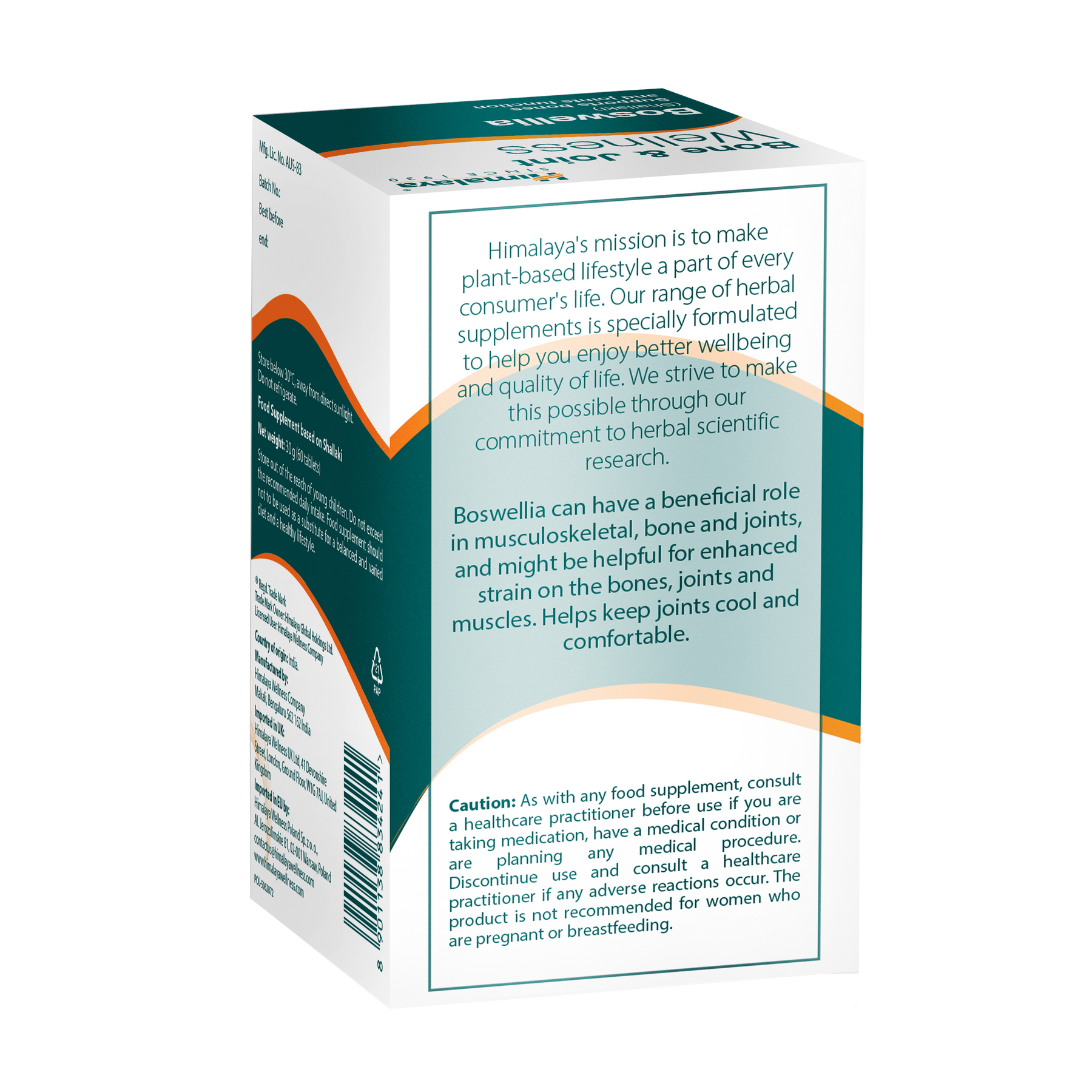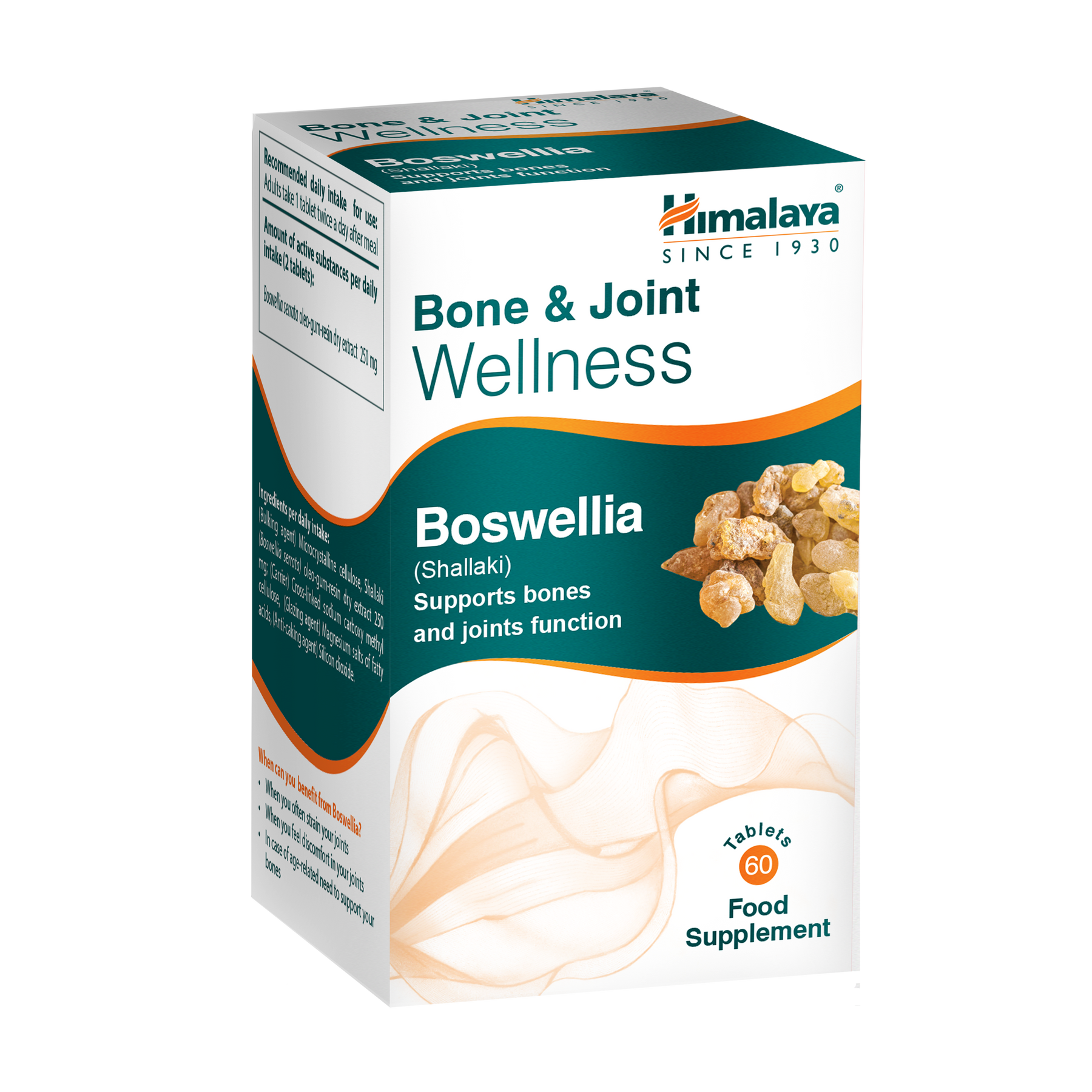 Wspieraj komfort i mobilność stawów dzięki tabletkom Himalaya Bone & Joint Wellness z Boswellią, naturalnym, roślinnym suplementem diety, który pomoże Ci zachować aktywność, elastyczność i komfort przez cały dzień. Każda dzienna porcja zawiera 250 mg ekstraktu z kadzidłowca indyjskiego (Boswellia serrata), tradycyjnego zioła ajurwedyjskiego, znanego ze wspierania zdrowia układu mięśniowo-szkieletowego i łagodzenia dolegliwości stawów.