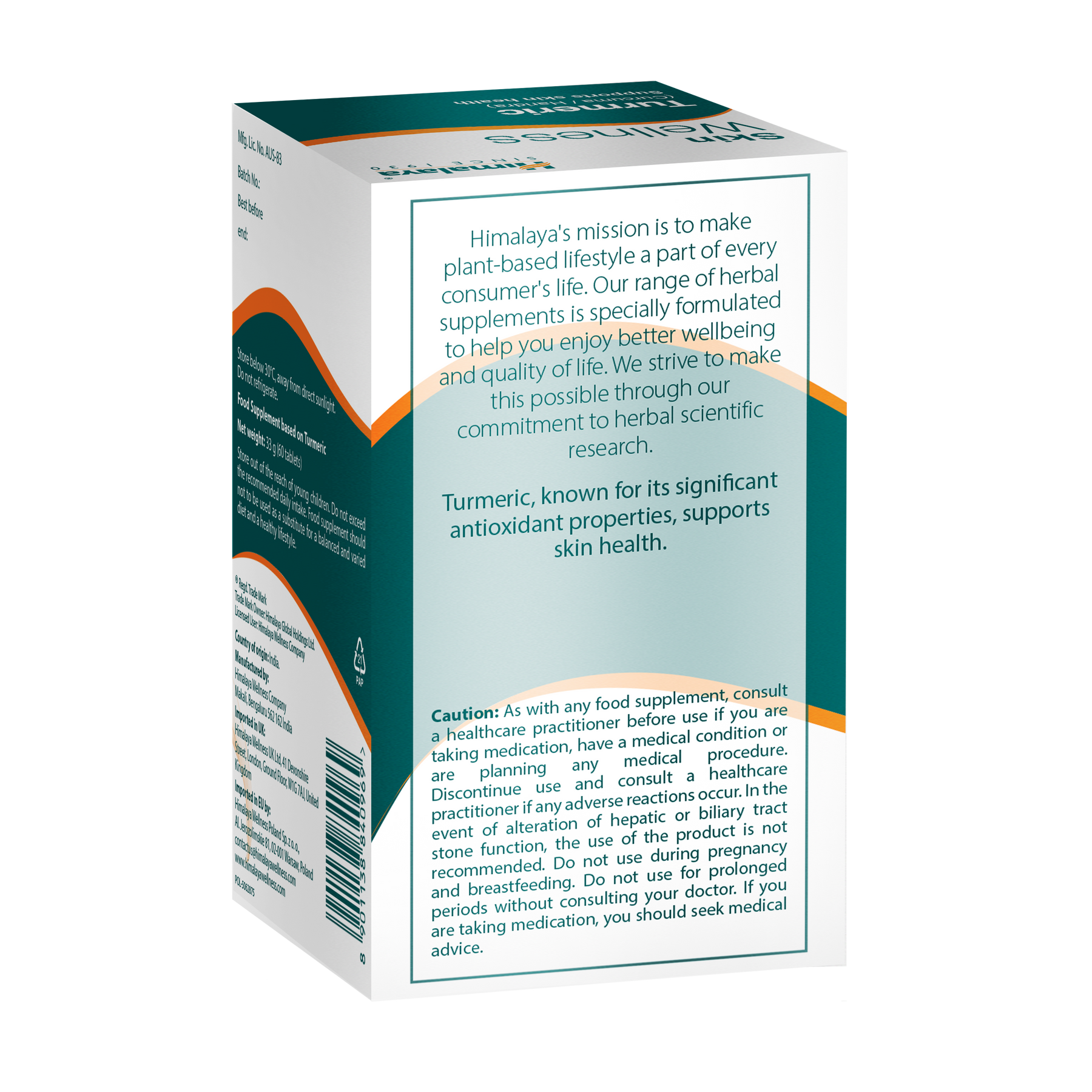 Przyjmuj jedną tabletkę dwa razy dziennie podczas posiłków, aby codziennie wspierać skórę i dobre samopoczucie. Himalaya Wellness łączy wiedzę ajurwedyjską z nowoczesną nauką od 1930 roku, oferując naturalne i skuteczne wsparcie ziołowe, na które możesz liczyć.