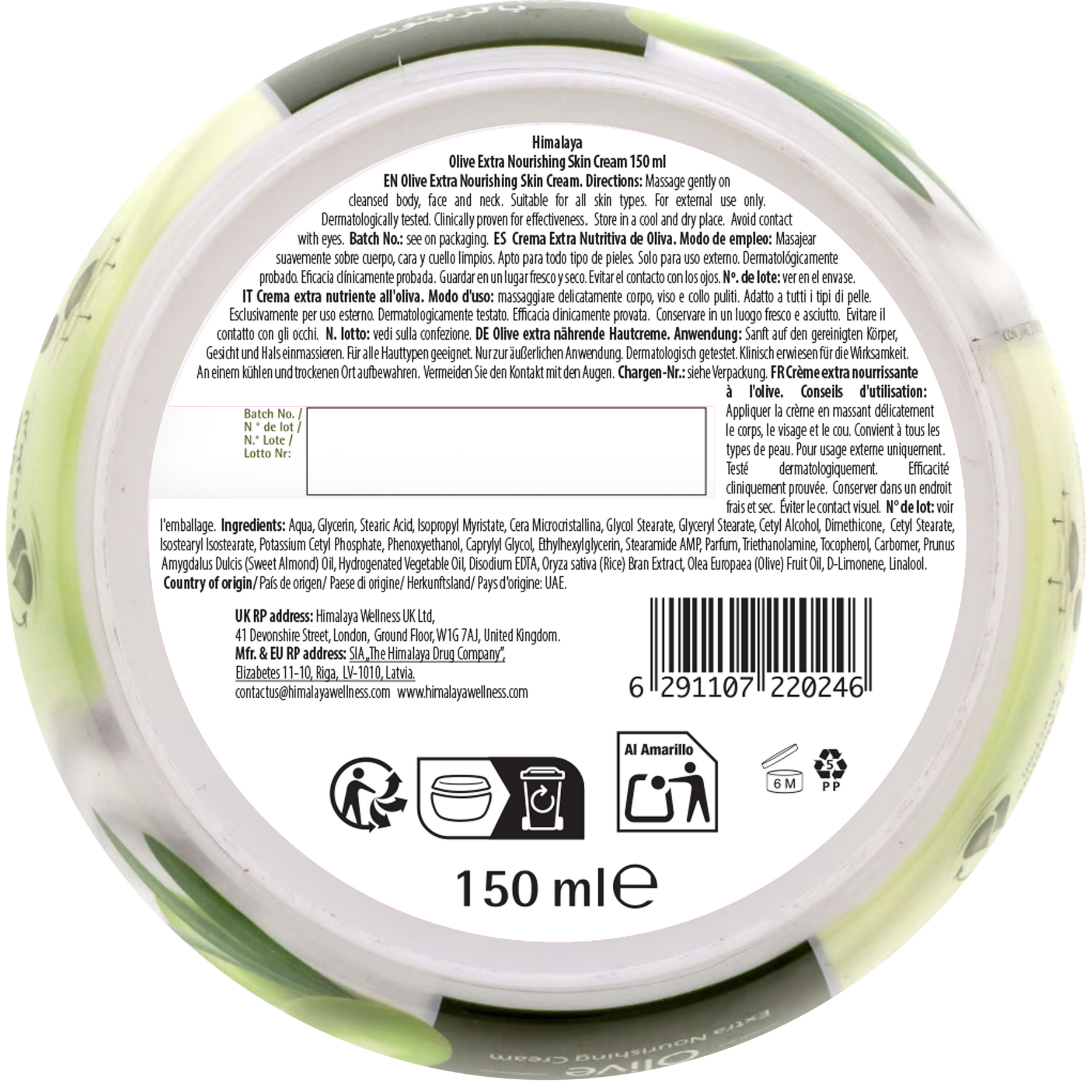 Krem Himalaya Olive Extra Odżywczy zapewnia długotrwałe nawilżenie i głębokie odżywienie zarówno twarzy jak i ciała.